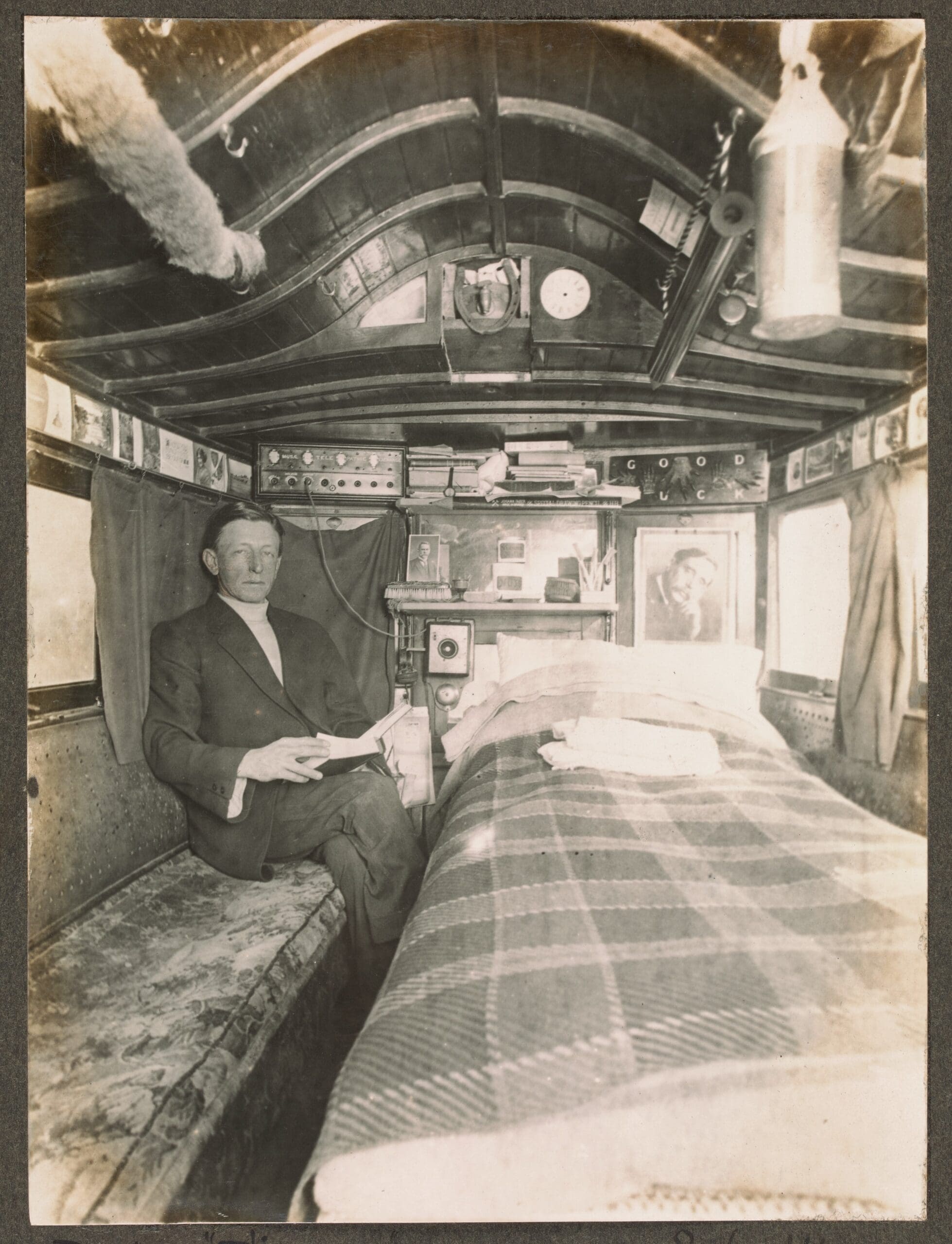 John Garibaldi Roberts, a wealthy tramways manager, opened his Kallista property Sunnyside, not far downhill from here, to visitors between 1910 and 1930. Roberts was an avid advocate for artists, intellectuals, writers and musicians. He encouraged creatives and intellectuals to stay at his property, often as a travel pit stop or as a place to reside for extended periods of time. During one stay at Sunnyside, C. J. Dennis, well-known Australian author, produced The Songs of a Sentimental Bloke (1915), now an Australian classic. Sunnyside hosted many other well-known creatives such as caricaturist David Low, etcher John Shirlow, watercolourist Alick McClintock, sculptor Web Gilbert, artist Hal Gye, author Robert Henderson Croll and painter Tom Roberts. When his property was at full capacity, artists would stay in converted omnibuses floating around the property.