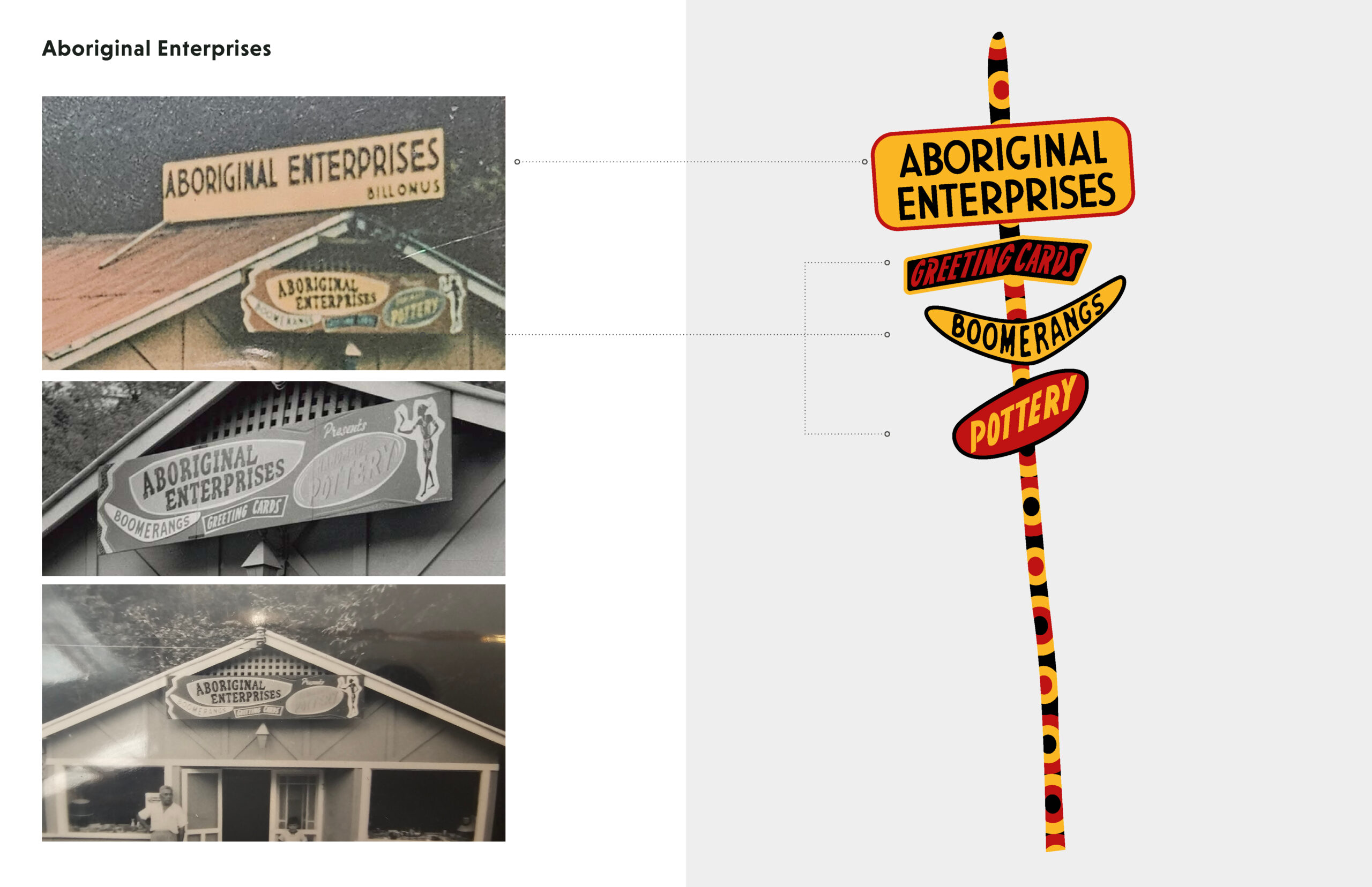 Drawing from the Onus family archive, Thrivance: Then, Now, Next pays homage to the legacy of William ‘Bill’ Onus, a trailblazing Yorta Yorta activist and artist who founded Aboriginal Enterprises in Belgrave (only a few hundred metres from the site). This vibrant business was not only a highly successful tourist destination, it also became an important and influential cultural and political hub, supporting many artists and activists who came to work there during the 1950s and ‘60s.