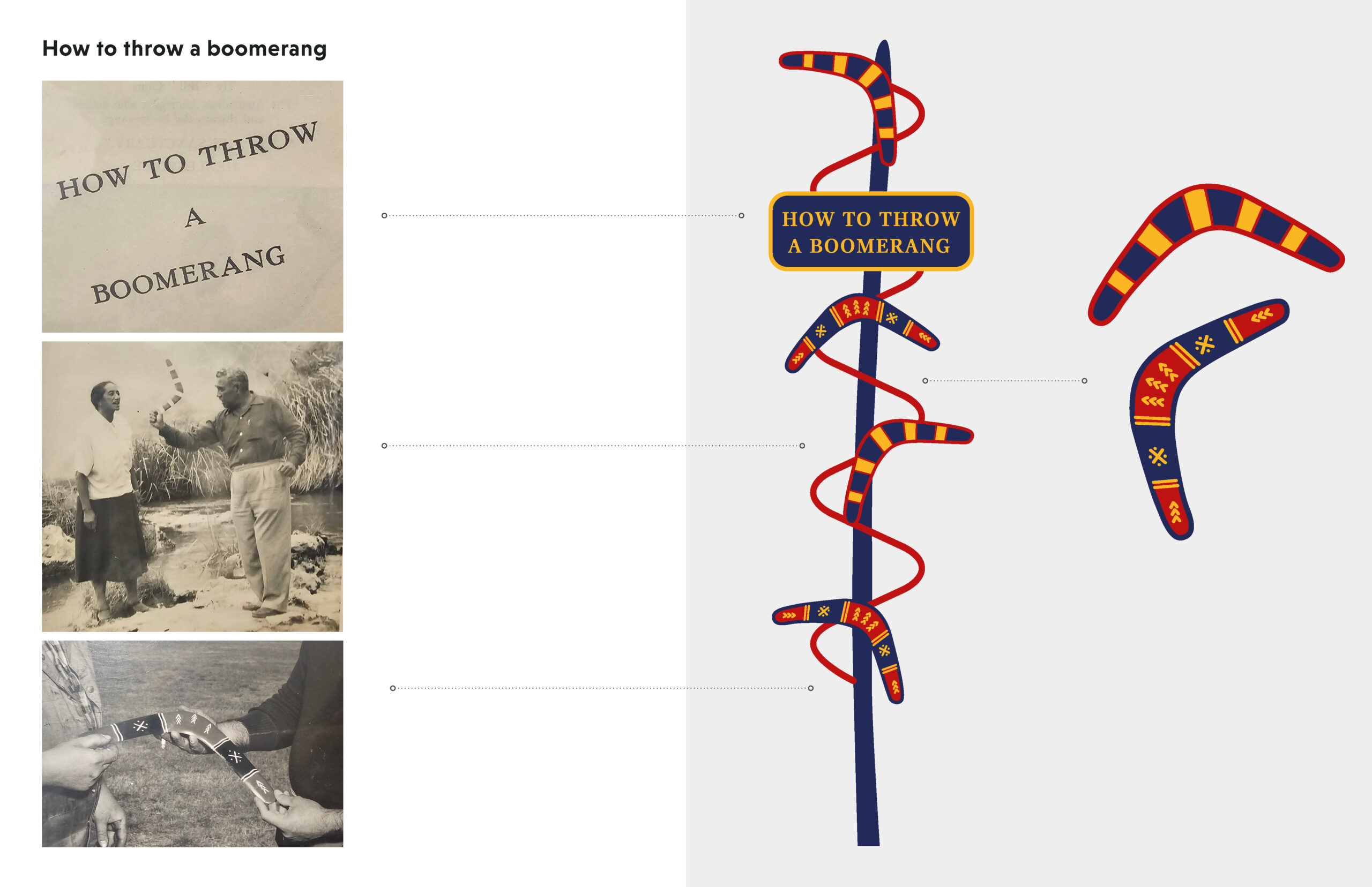 Thrivance: Then, Now, Next is a collaborative work by Tiriki Onus, a Yorta Yorta and Dja Dja Wurrung artist, academic and maker; Jenna Lee, a Larrakia, Wardaman and Karajarri contemporary artist and graphic designer with mixed Japanese, Chinese, Filipino and Anglo-Australian ancestry; and Jamie Ferguson (Aeroplane Workshop) who has 25 years’ experience working in the interactive and interpretive exhibition environment.